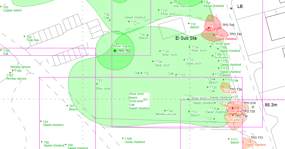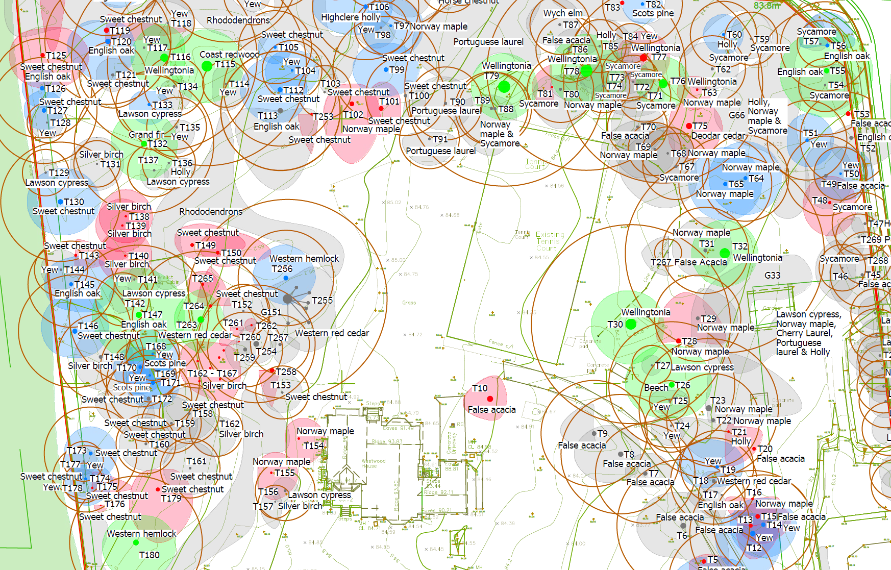 Specialist tree quality and value assessment to BS 5837 Trees in relation to design, demolition, and construction – Recommendations. We produce arboricultural impact assessments, reports supporting planning applications, tree preservation orders and conservation areas. Our plans are produced using AutoCAD, and the trees are plotted on-site using GPS. We produce appeal statements and attend appeal hearings and inquiries.